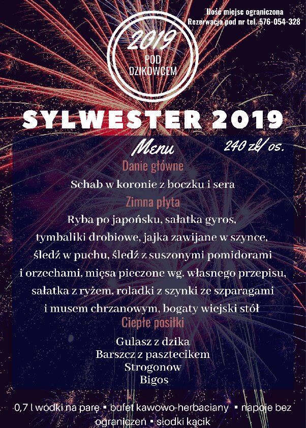 Drodzy Klienci! Aby spełnić Wasze wszystkie oczekiwania, proponujemy profesjonalną organizacje imprez okolicznościowych. Jeżeli szukasz wyjątkowego miejsca- to jest oferta dla Ciebie. ? Organizując imprezę "Pod Dzikowcem" to Ty ustalasz menu oraz decydujesz o wystroju i dekoracji sali. Każda impreza organizowana w naszej restauracji, jest dostosowana do indywidualnych potrzeb. Dla naszej obsługi nie ma rzeczy niemożliwych do zrealizowania! ? Zapewniamy nagłośnienie i zabawę przy każdego rodzaju muzyce. Ponadto proponujemy usługę cukierniczą- realizujemy zamówienia na torty bądź ciasta na organizowane imprezy u nas. Gwarantujemy, że każda impreza u nas zostanie na długo w waszej pamięci! ? Zapraszamy do kontaktu telefonicznego w celu rezerwowania terminów i ustalania szczegółów. ? ?
